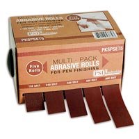 Abrasive Rolls (5 pk) Conveniently finish your pens in five graduated sanding steps with this handy dispenser. An essential process for finishing your pens properly. Dispenser includes 5 rolls of hard to find J-weight cloth backed sandpaper 1" wide x 20' rolls.